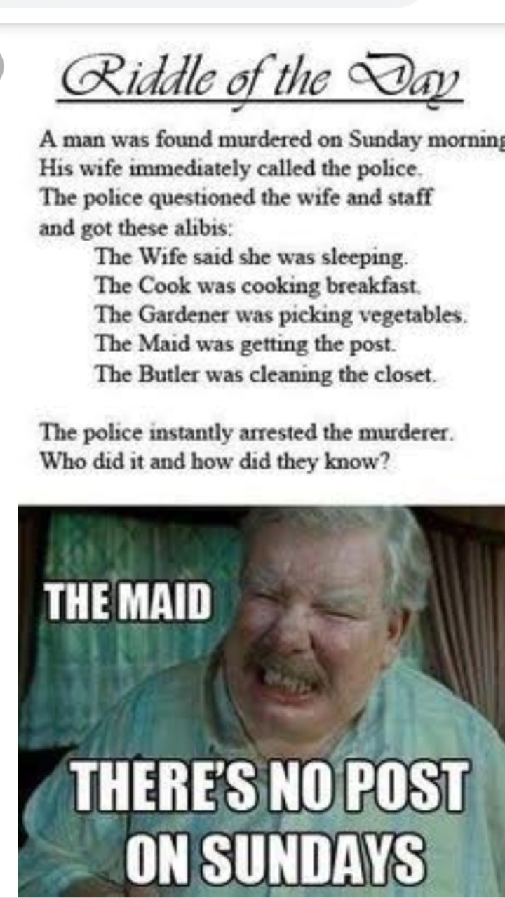 SOLUCIÓN: Jackson, el mayordomo, ha mentido. Los domingos no hay correo, así que no ha podido ir a recogerlo y clasificarlo.